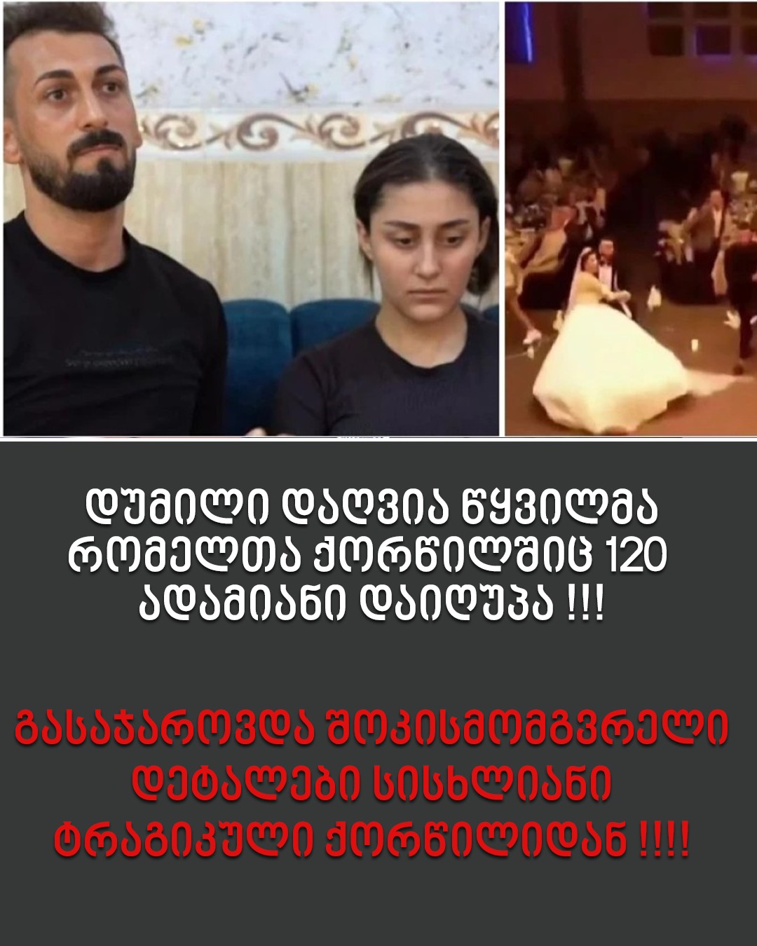 რამდენიმე დღის წინ ერაყში, ქორწილში მომხდარმა უბედურმა შემთხვევამ მთელი მსოფლიო შეძრა. ვრცელდებოდა ინფორმაცია, რომ ქორწილში გაჩენილ ხანძარს ნეფე-პატარძლის სიცოცხლეც შეეწირა. თუმცა, ცოტა ხნის წინ Sky News-მა ნეფე-პატარძალთან ჩაწერილი ექსკლუზიური ინტერვიუ გაავრცელა.
